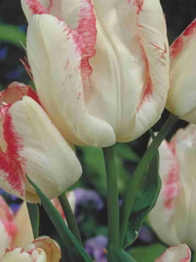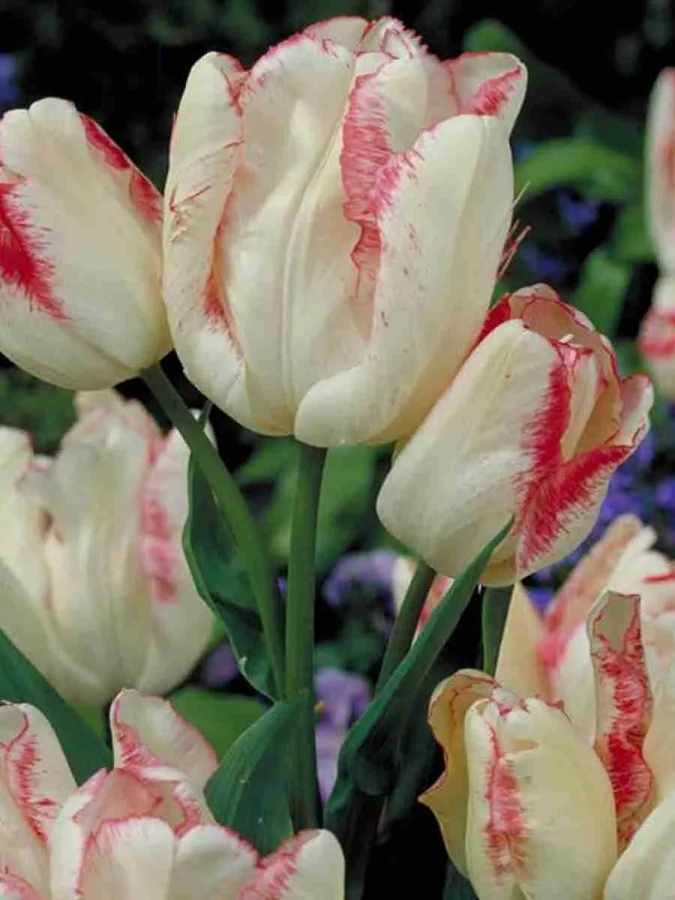 Тюльпан toucan - это великолепное растение с белыми цветками, украшенными красной или темно-розовой неровной окантовкой по краям. Этот сорт тюльпанов отличается высотой до 40 см и цветением в мае. Toucan предпочитает солнечные места и может быть посажен как в групповые, так и в одиночные посадки.