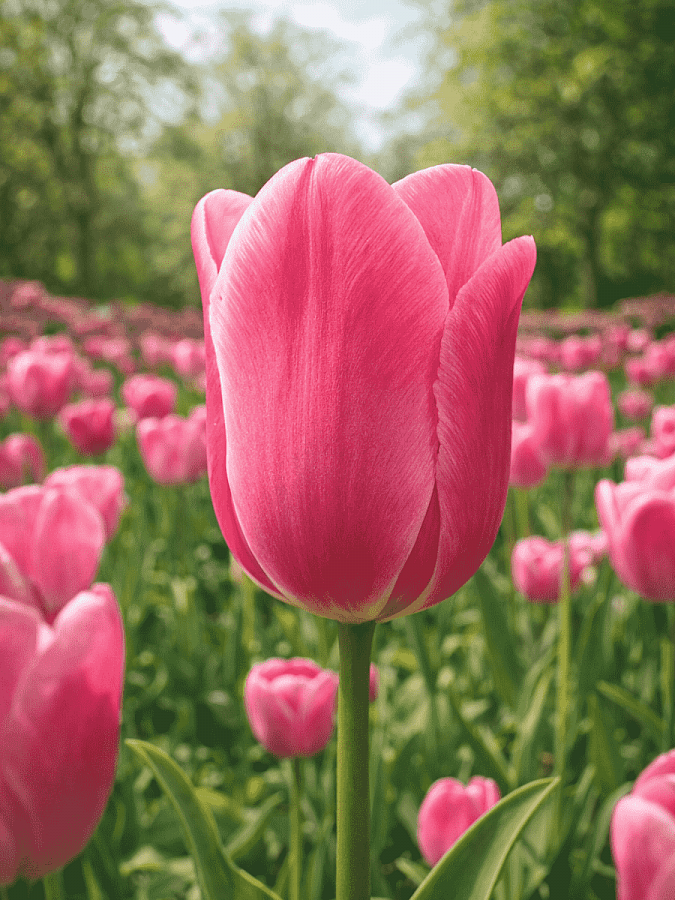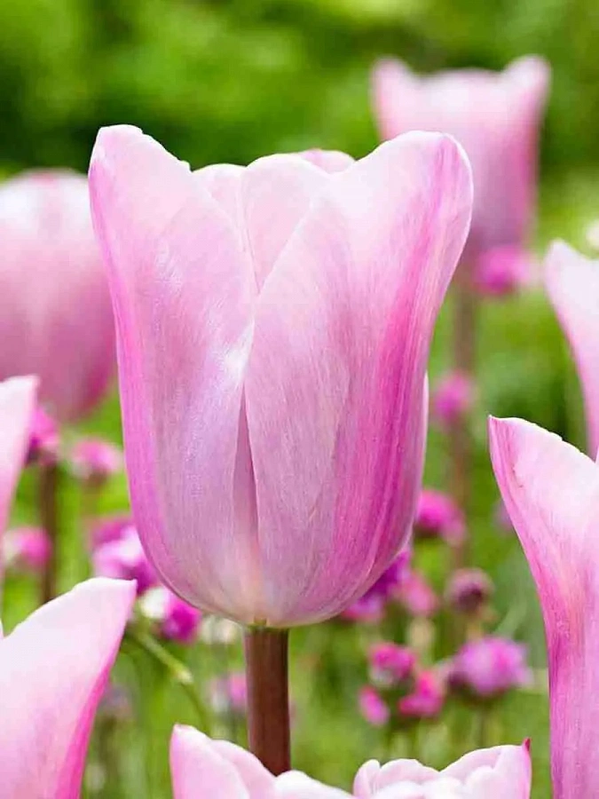 Этот сорт тюльпанов радует глаз своими розовыми цветками в мае-апреле, размер которых составляет 8-9 см. Он предпочитает солнечные места и заслуженно считается светолюбивым растением. Для процветания тюльпана необходимо обеспечить регулярный полив и опрыскивание, особенно в период цветения.