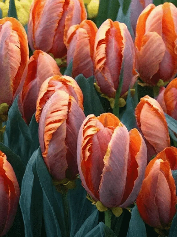 Тюльпан триумф Prinses Irene - это великолепное растение с оранжевыми цветками, которое поражает своей красотой и изяществом. Стебель тюльпана прочный и прямой, достигает высоты до 60 см, что делает его идеальным для групповых и одиночных посадок. Листья тюльпана имеют ярко-зеленый цвет и создают прекрасный контраст с яркими цветками.