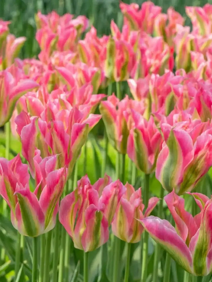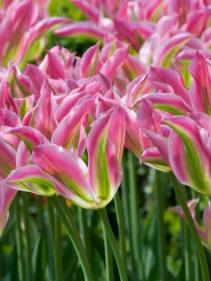 Тюльпан virichic - это настоящая жемчужина среди садовых растений. Его стебель прочный и изящный, достигает высоты до 70 см, а цветки радуют глаз своей яркой розовой окраской с насыщенно-зеленым мазком в середине. Размер цветка составляет от 6 до 10 см, что делает этот сорт тюльпана по-настоящему великолепным.