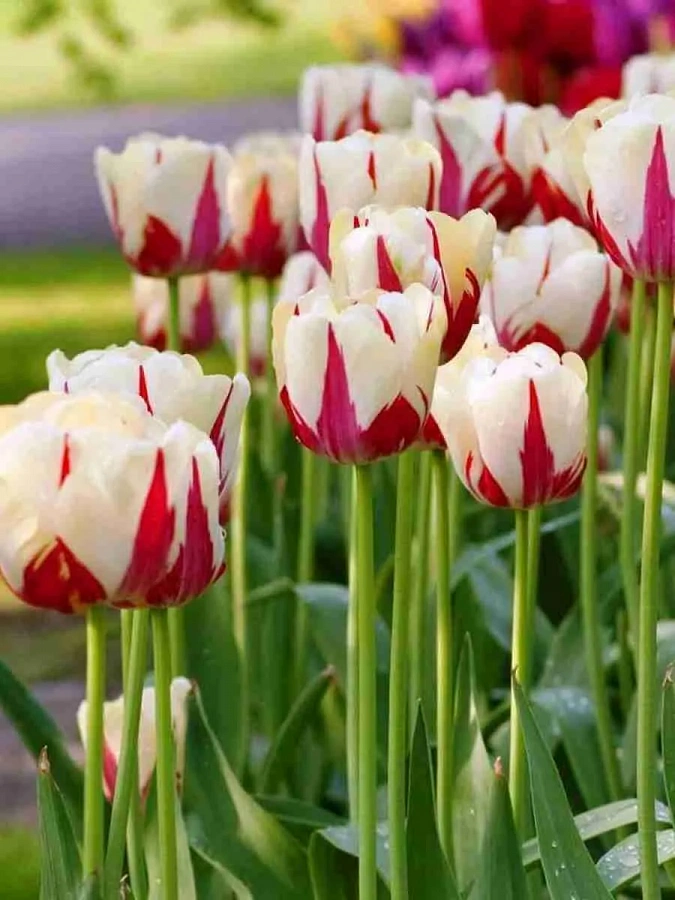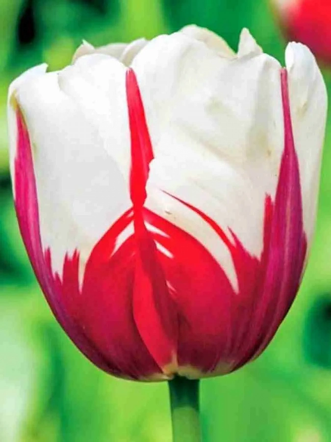 Тюльпан World Expression - это великолепное растение с белыми цветками, украшенными красными краями. Его стебель достигает высоты от 50 до 70 см, что делает его идеальным выбором для групповых или одиночных посадок в саду. Листья тюльпана World Expression имеют классическую форму и придают растению изысканный вид.