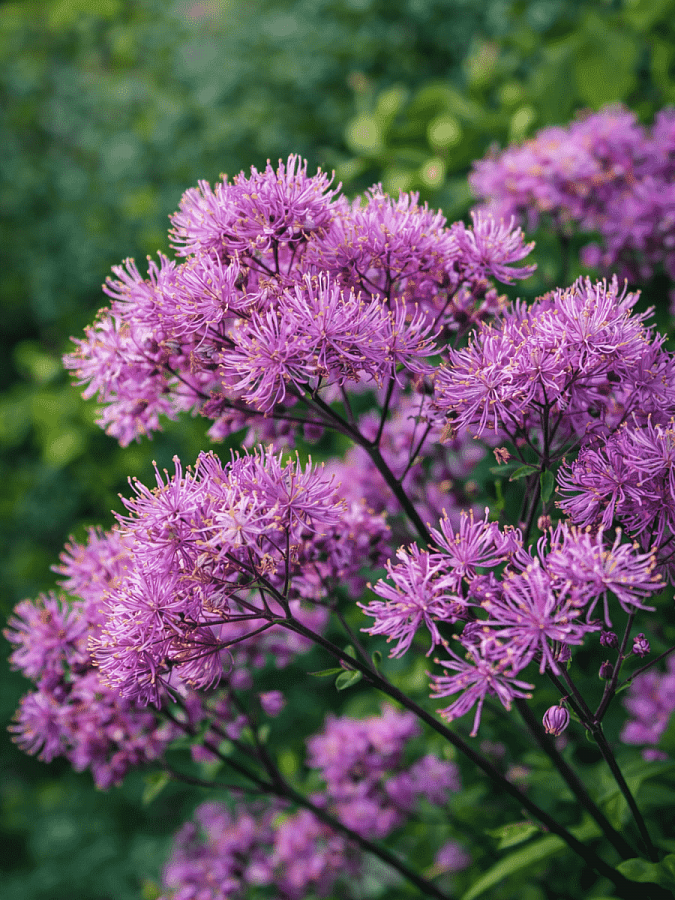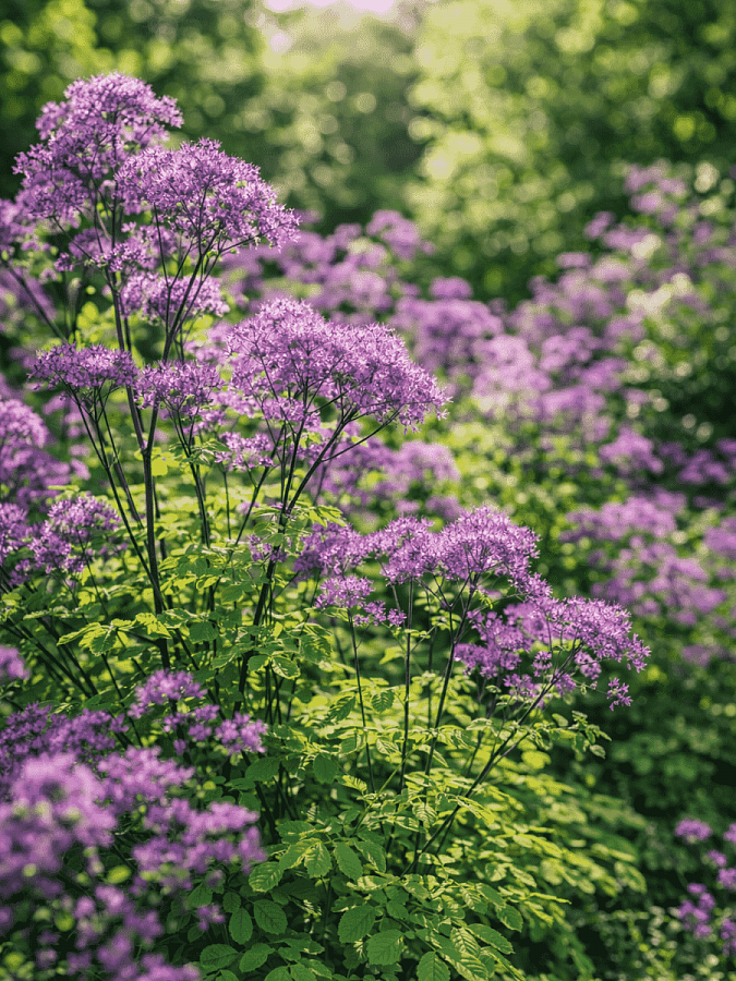 Василистник Delavayi Black Stockings - это удивительное растение с изысканным лилово-розовым цветком, которое поражает своей красотой и изяществом. Этот сорт василистника отличается высотой до 120 см, что делает его идеальным выбором для групповых и одиночных посадок в саду. Листья данного растения имеют интересную форму и придают ему особый шарм.