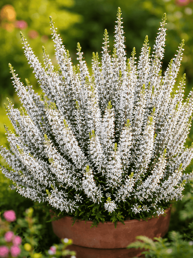 Вереск обыкновенный alba praecox - это изысканное растение с белыми цветками, которое поражает своей красотой и изяществом. Его ствол прочный и устойчивый, а размеры растения достигают до 35 см в высоту. Листья вереска имеют зеленую окраску летом, создавая яркий контраст с белыми цветками.