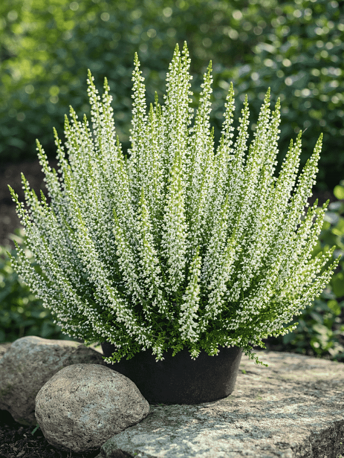 Вереск обыкновенный helena - это удивительное растение с белыми цветками, которое поразит вас своей красотой и изяществом. Его зеленая листва идеально дополняет окраску цветков, создавая неповторимый образ в вашем саду. Сорт helena отличается компактным размером до 35 см, что делает его идеальным выбором для групповых или одиночных посадок.