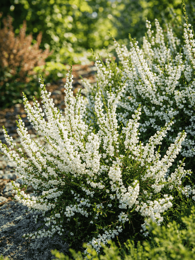 Вереск обыкновенный kinlochruel - это изысканное растение с белыми цветками, которое поразит вас своей красотой. Его зеленая и бронзовая листва создает удивительный контраст, делая его идеальным выбором для групповых или одиночных посадок в саду. Этот вереск достигает высоты до 35 см и диаметра до 35 см, что делает его компактным и легким в уходе.