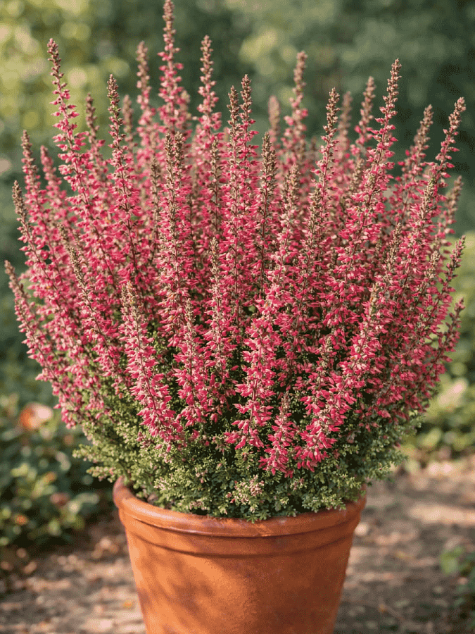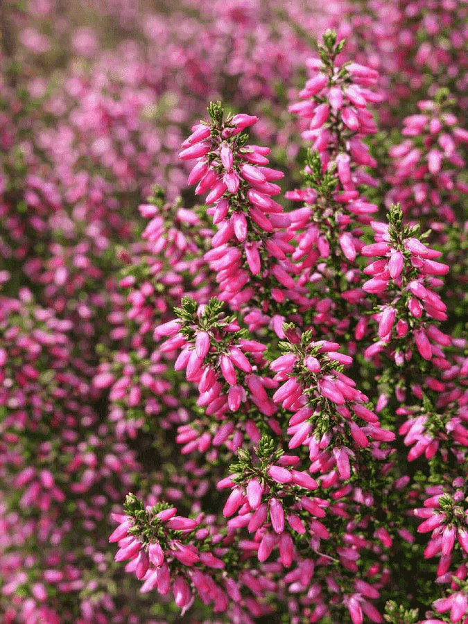 Вереск обыкновенный red angie - это удивительное растение с яркими розово-красными цветками, которые привлекают внимание своей красотой. Этот сорт вереска отличается компактным размером до 50 см и зеленой летней листвой, создавая яркий контраст с яркими цветами. Он предпочитает солнечные места и подходит для групповых и одиночных посадок в саду.