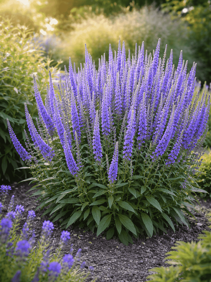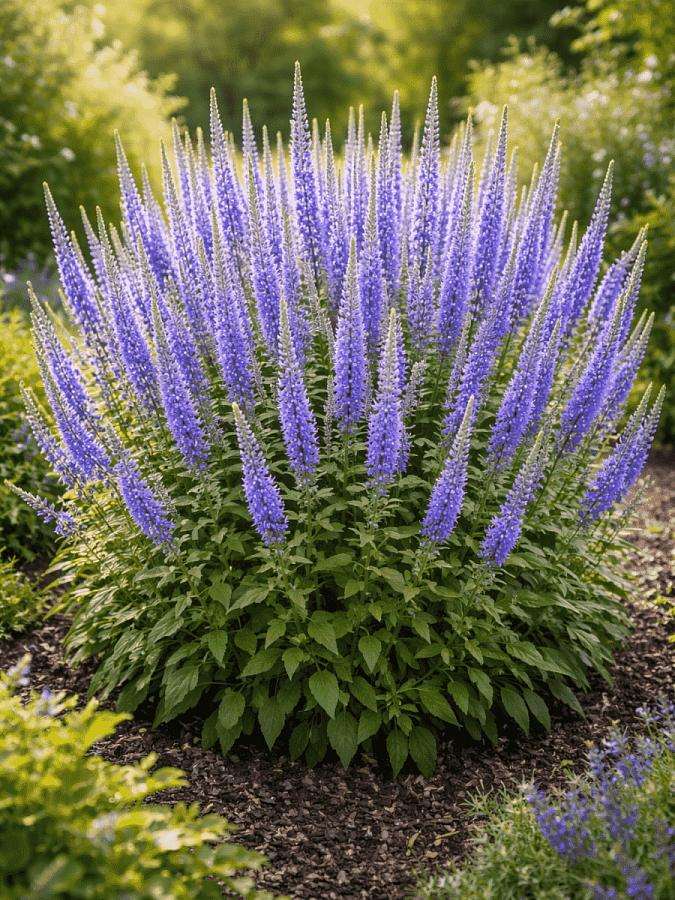 Это растение предпочитает солнечные места для посадки и хорошо растет как в групповых, так и в одиночных посадках. Вероника колосистая не требует сложного ухода: достаточно регулярного полива и опрыскивания. Важно помнить о подкормках в период активного роста.