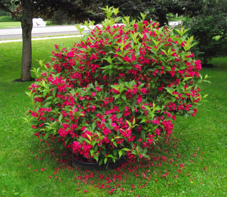 Саженцы Вейгелы гибридной Bristol Ruby (Бристол Руби) очень популярны среди разновидностей этого кустарника. Крупномер достигает 2,5 метров ввысь и имеет пышную крону. Этот сорт быстрорастущий, его побеги свисают. Время цветения Вейгелы гибридной Bristol Ruby приходится на середину лета – июнь и июль. Соцветия состоят из 3-5 цветков, имеют колокольчатую форму и рубиново-красный цвет. Листья растения долго держат цвет и опадают только поздней осенью. Они имеют эллиптическую форму.