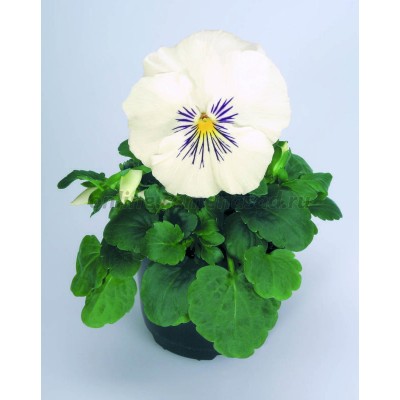 Виола крупноцветковая "Кетс Вайт" - это великолепное растение с белыми цветками, которое порадует вас своей изысканной красотой. Сорт этой виолы отличается высотой до 15-20 см и размером цветка 6-8 см, что делает его идеальным выбором для групповых посадок. Это растение предпочитает солнечные и полутенистые места, а также плодородные почвы.