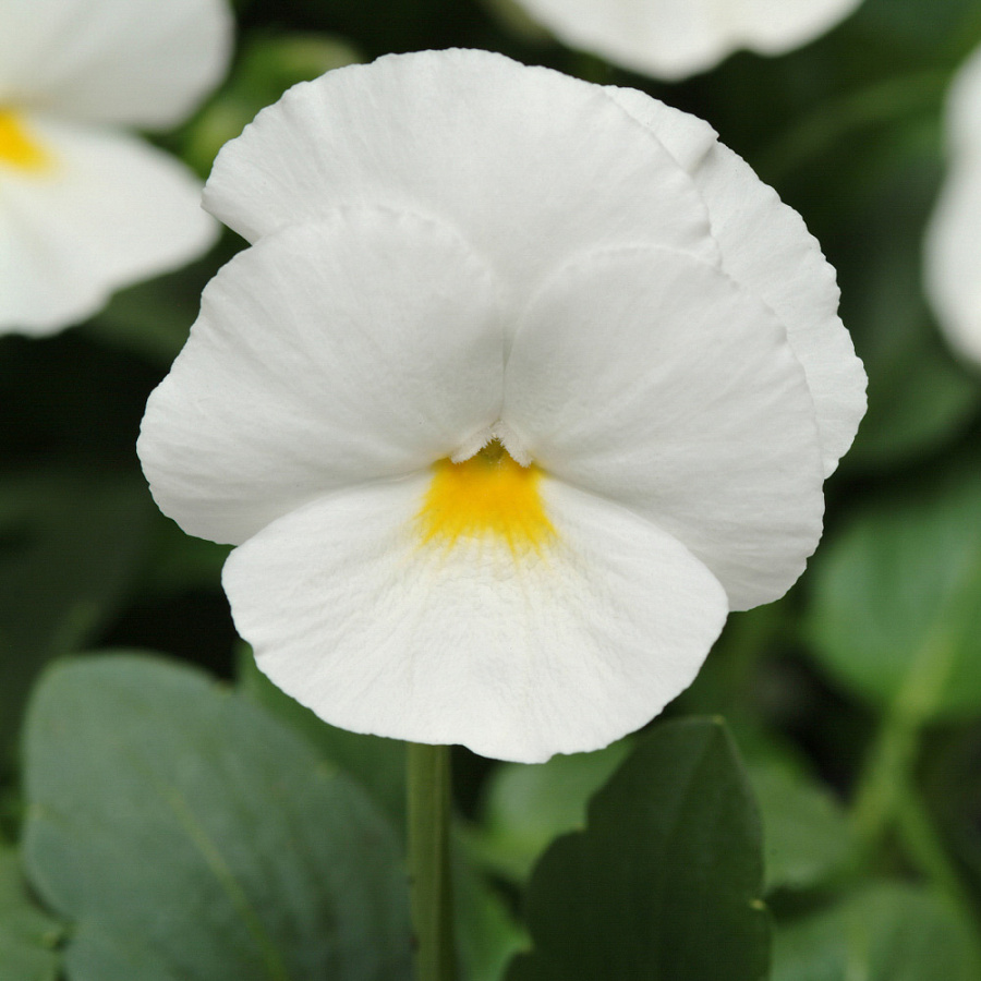 Виола крупноцветковая маммот вайт хот - это удивительное растение, которое поразит вас своей изысканной красотой. Ее стебель прочный и устойчивый, достигает высоты 15-20 см, что делает ее идеальным выбором для групповых посадок. Цветки этой виолы белого цвета, размером 7-9 см, будут радовать вас своим блеском в течение июня и июля.