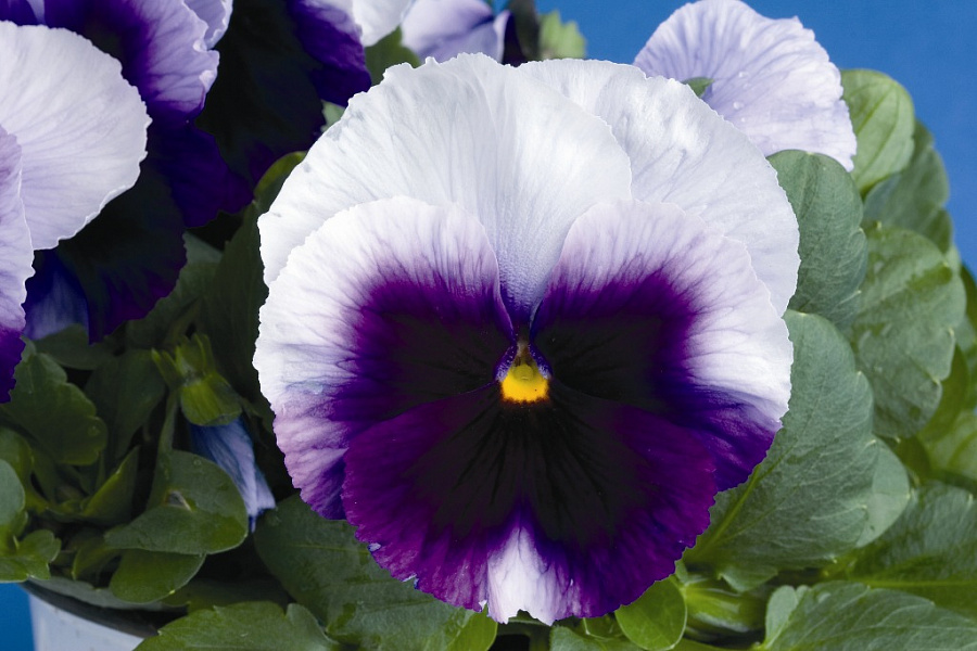 Виола крупноцветковая селло биконсфилд - это великолепное растение, которое поразит вас своей изысканной красотой. Ее фиолетово-белые цветки диаметром 8-10 см привлекут внимание всех садоводов. Высота растения до 15 см делает его идеальным для групповых посадок, создавая удивительные цветочные композиции.