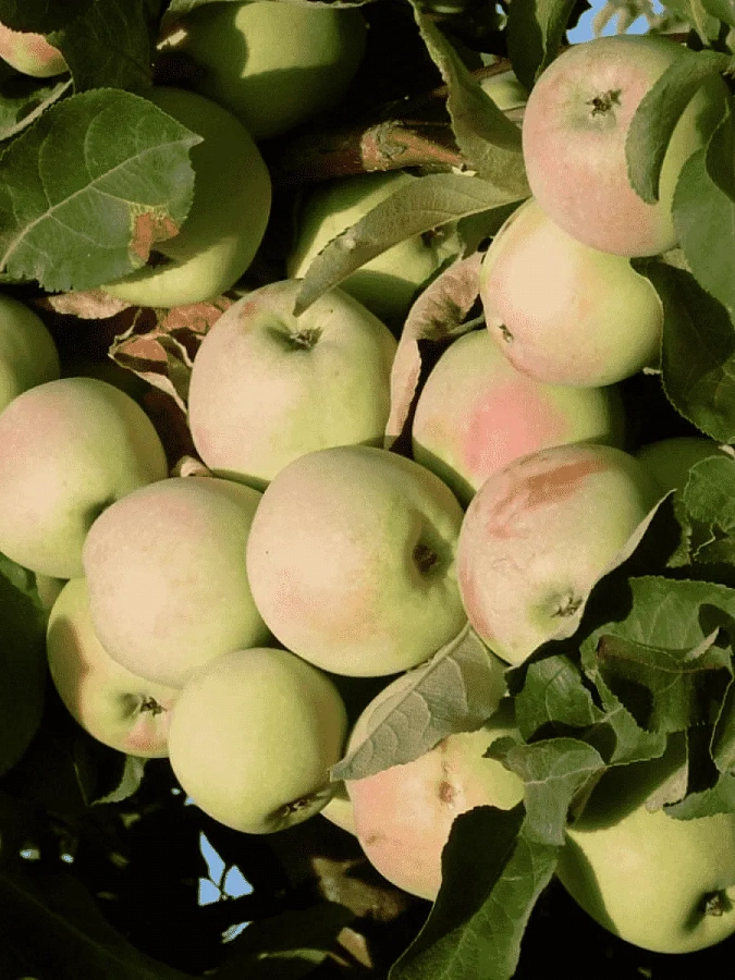 Саженцы яблони Синап орловский весной могут стать главным акцентом вашего сада, благодаря большим цветам светло-розового цвета, которые украшают широкую крону дерева. Взрослые деревья отличаются габаритами, значительно превышающими размеры других сортов. Крупномеры быстро взрослеют и могут давать до 70 кг яблок с дерева. При сборе урожая плоды желто-зеленого цвета, но со временем обретают желто-золотую окраску, на стороне плода, получившей большего всего солнечного света, появляется красноватый румянец.