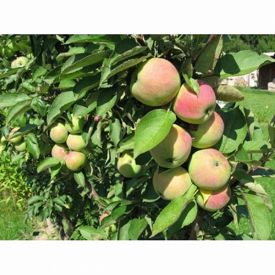 Саженцы яблони колоновидной Каскад идеальны для сада, где нет места большим раскидистым деревьям. Плодовое дерево этого сорта порадует обилием плодов, которые плотно прижимаются к единственному стволу. Масса одного яблока составляет около 200 граммов. При основной зеленовато-желтой окраске плода, солнечная сторона украшена темно-красным румянцем и рассыпанными по поверхности подкожными точками. Вкусовые качества плодов сорта Каскад очень высоко оценены многими отечественными садоводами. Яблоки имеют сочную желтоватую мякоть, приятный аромат и достаточно сладкий вкус с небольшой кислинкой.
