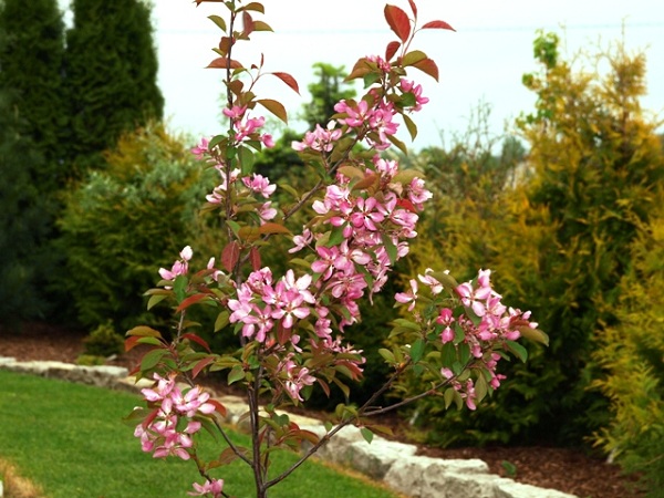 Саженцы яблони "Маковецкого" следует высаживать на солнечные участки с плодородной землей. Растение не переносит заболоченных и чрезмерно сухих почв. Это небольшое деревце, до трех метров высотой, с гладкими ветвями без колючек. Плодоносит на третий-четвертый год после посадки. Яблочки мелкие, до 2 см, слегка шаровидные, с восковым налетом, фиолетово-пурпурные, с розово-пурпуровой мякотью. Созревают в августе — сентябре. Саженцы яблони "Маковецкого" рекомендуются для широкого использования, особенно их часто применяют в красочных композициях и одиночной посадке на газоне.