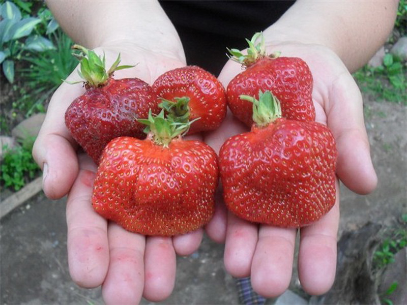 Кусты достаточно высокие ― до 30 см, ягоды тяжелые, поэтому нужно учитывать расстояние между ними при высадке. Вес ягод в среднем составляет около 15 г но некоторые экземпляры могут дорастать аж до 120 г. Отличаются нежным, с легкой кислинкой вкусом и стойким, ярко выраженным клубничным ароматом.