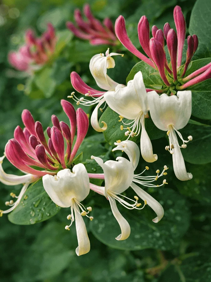 Саженцы жимолости Инга (Inga) вырастут в лиану длиной до 4 метров. Гибкие побеги покрыты светло-зеленой листвой, меняющей осенью окраску на золотую. Цветение приходится на май и июнь. Цветки ароматные, необычной формы, похожи на мотыльков или паучков бело-розового цвета. Плоды жимолости Инга не съедобны.