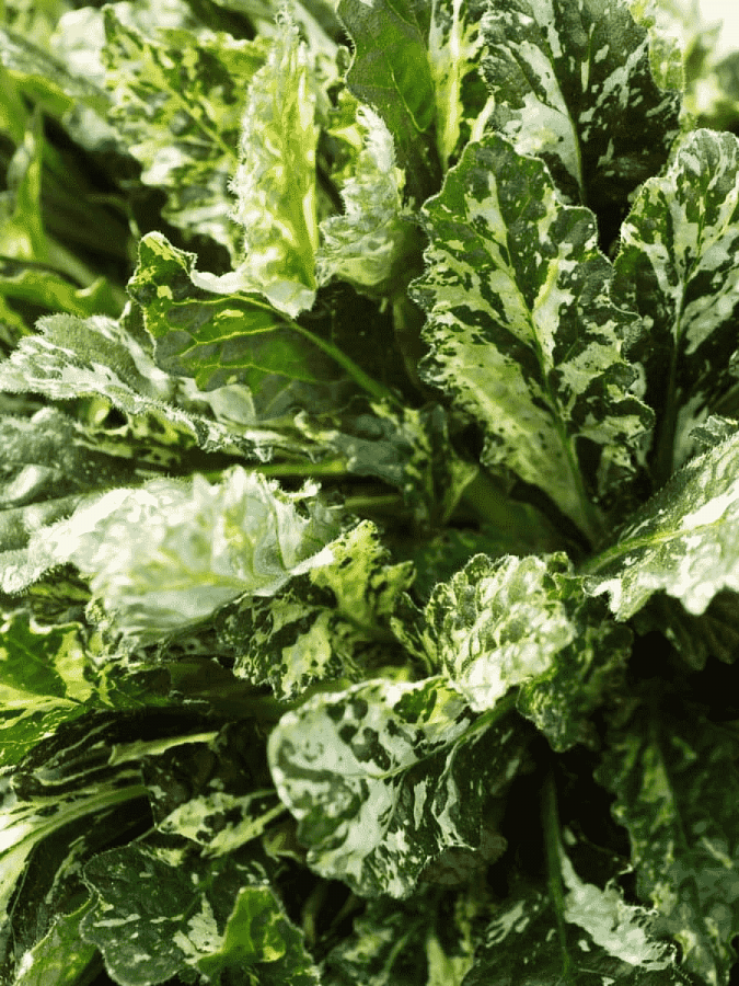 Летняя окраска листвы : темно-зеленая, покрыта кремово-белыми штрихами