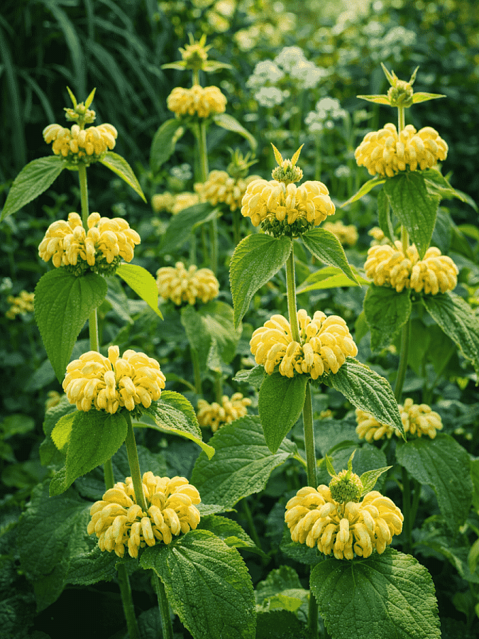 Зопник рассела, или phlomis russeliana, - это удивительное растение с яркими светло-желтыми цветками, которые радуют глаз в июле и августе. Его стебли достигают высоты до 60 см, что делает его идеальным выбором для групповых и одиночных посадок в саду. Листья зопника имеют интересную форму и придают растению особый шарм.